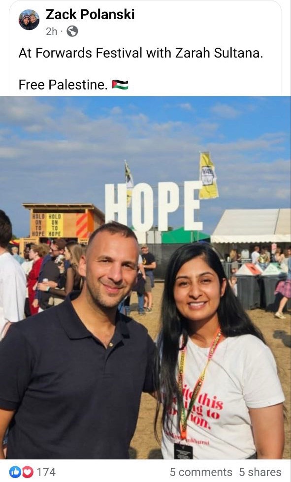 Zarah Sultana and Zack Polanski pose at Forwards Festival under the word HOPE. Zack is on the verge of becoming leader of the Green Party and Zarah has captured the vision and hopes of at least half of the 750,000 members to sign up to Your Party. Her position in that party is looking more and more untenable, so is Zarah Sultana MP about to make an historic leap to the Green Party? Bringing 400,000 eco-socialist minded members, a seat in Parliament and a fully fledged anti-Zionism movement with her?